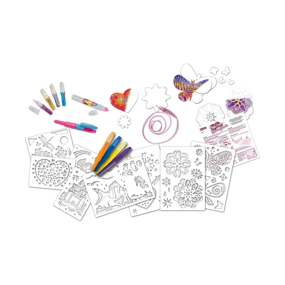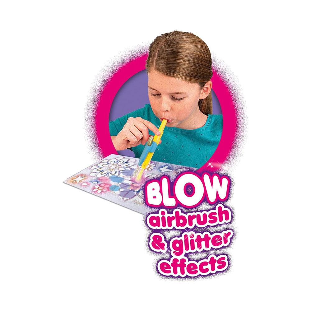 • Glittery Airbrush Creations : The Blopens Glitter Studio allows you to blow through special pens to create colorful airbrush designs. Simply choose a stencil, blow through the pen, and watch your artwork come to life!