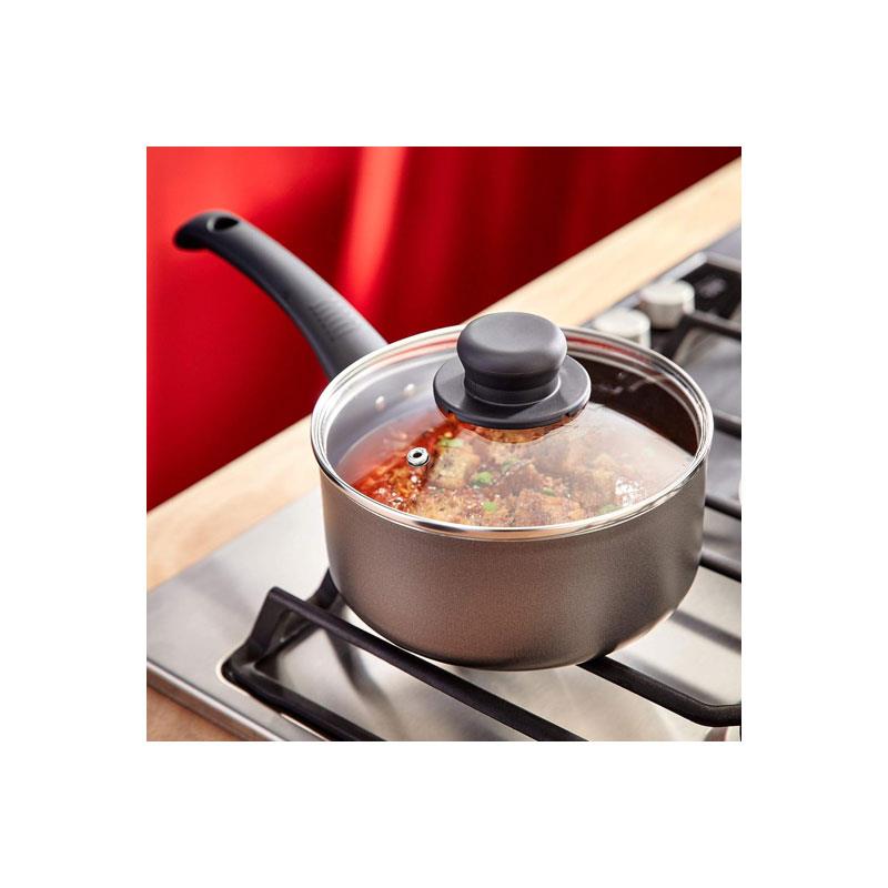 Featuring a premium Teflon non-stick coating, this saucepan allows effortless food release and easy cleaning after every use. The vented glass lid lets you monitor cooking while controlling steam, helping prevent boil-overs and retain moisture for better flavour.