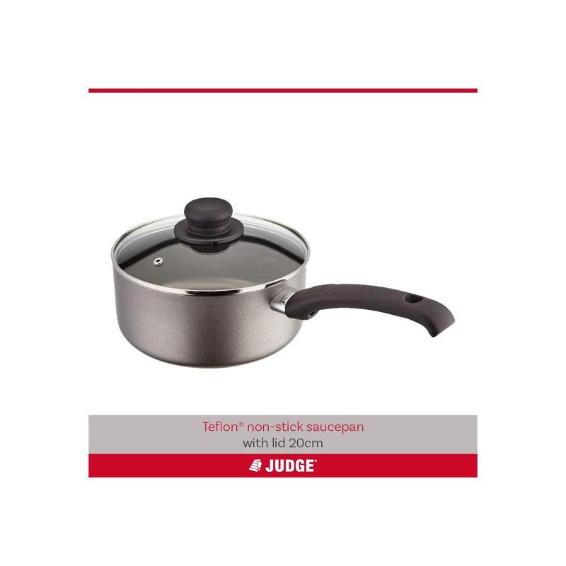 Judge Everyday Non-Stick Saucepan 20cm/2.4 Litres Vented Glass Lid Stay Cool Handle Aluminium Grey