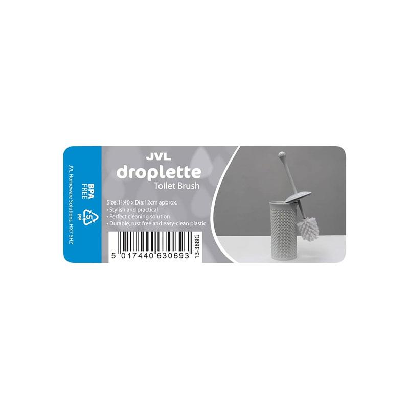 Home / Home & Kitchen / Bathroom / JVL Droplette Toilet Brush And Holder Set Plastic 40 x 12cm Approx Ice Grey