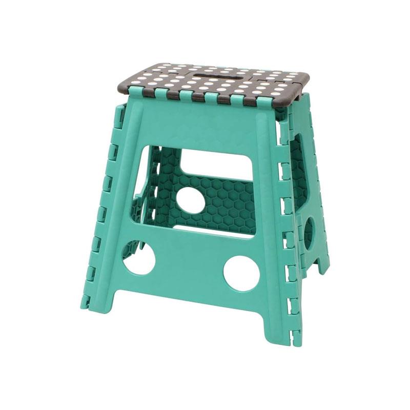 The stool features textured grip dots on the top surface, providing enhanced stability and reducing the risk of slipping during use. Its foldable design allows it to collapse flat, making storage effortless in tight spaces such as cupboards, under sinks, or behind doors.