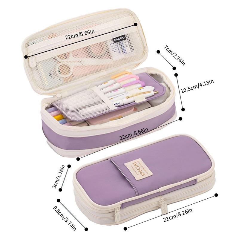 Add a touch of pastel charm to your school or office with this Kawaii pencil case for teen girls and students. With its large double-layer capacity, smooth premium zipper, and cute lavender design, this pencil pouch is as practical as it is stylish. Perfect for keeping all your stationery, art supplies, or even cosmetics neatly organised.