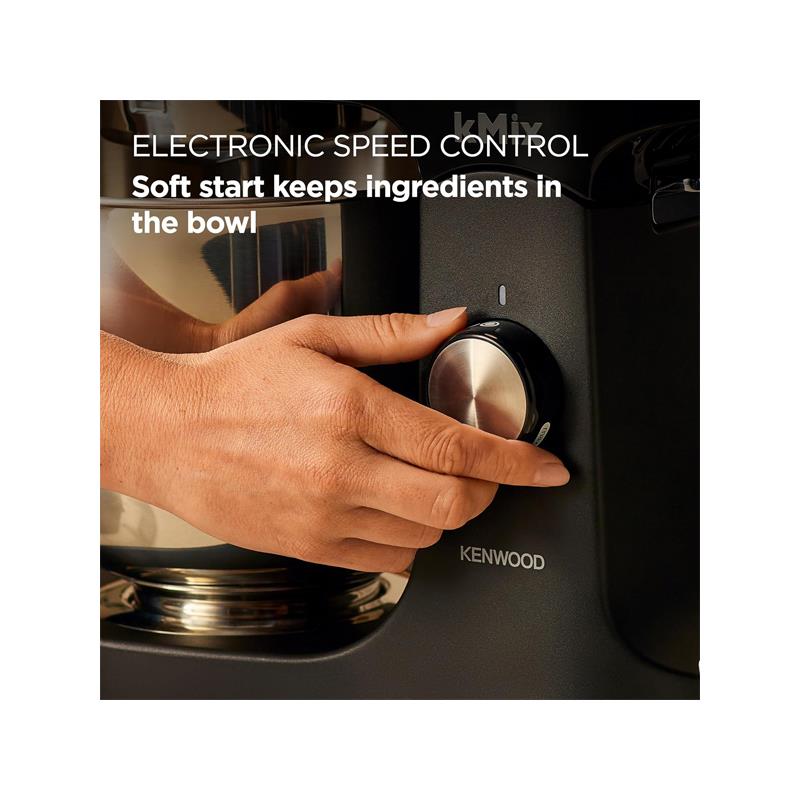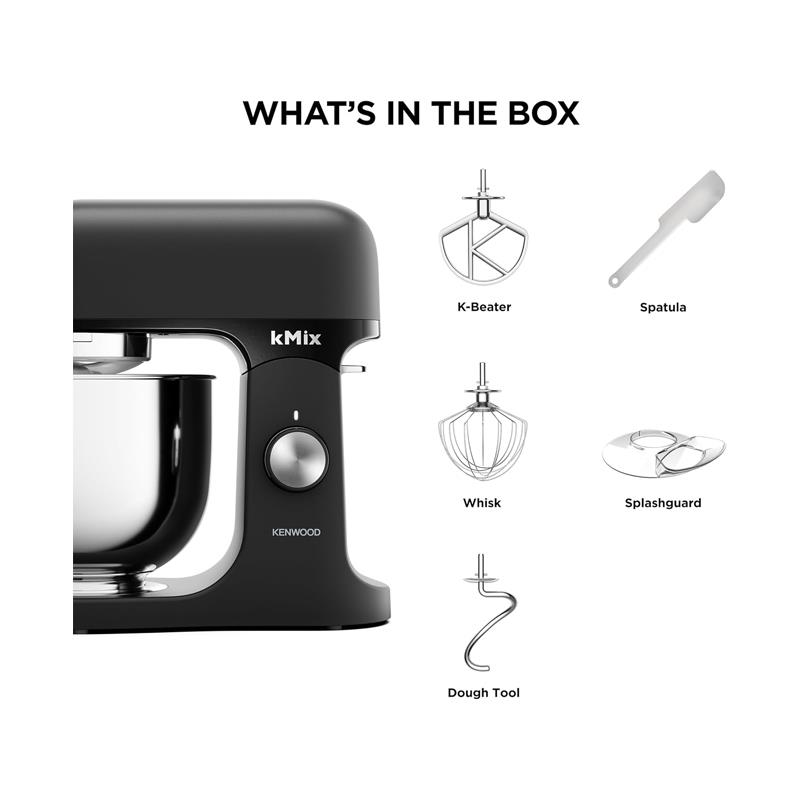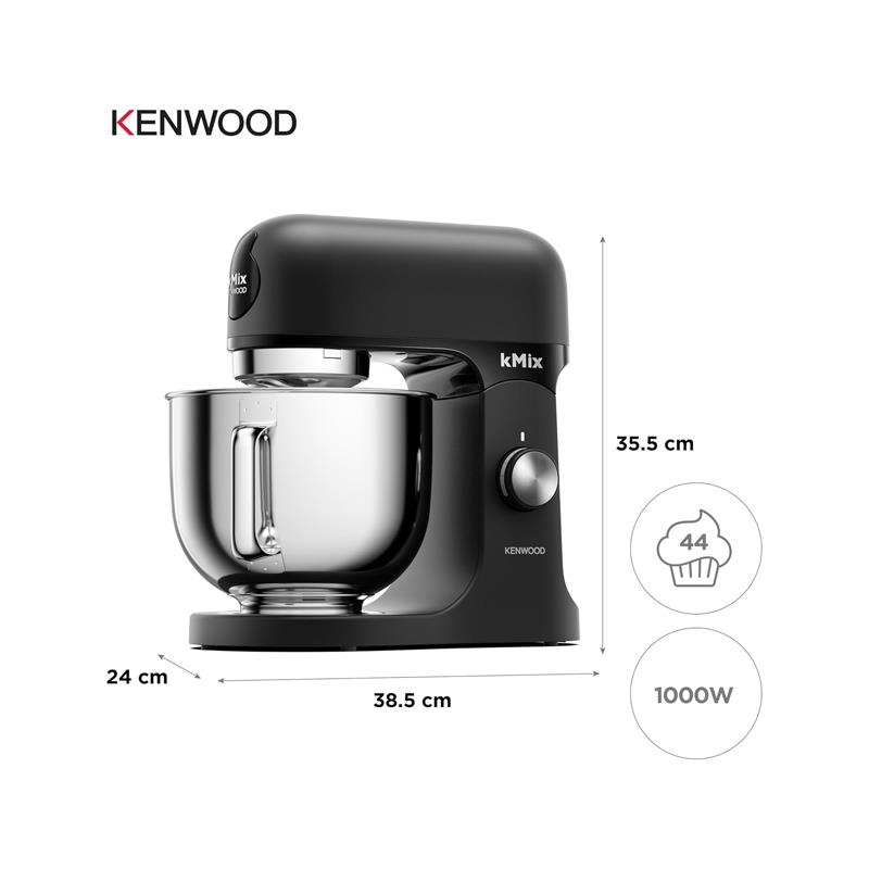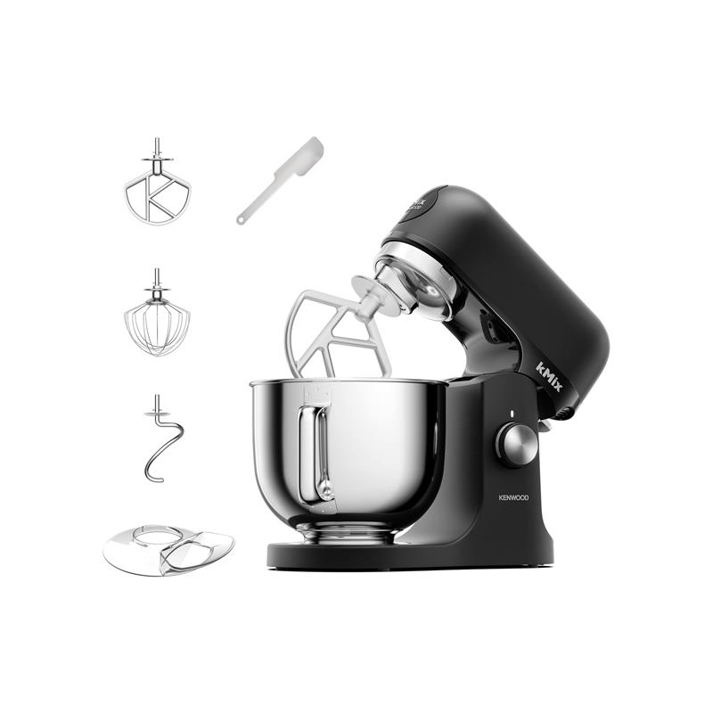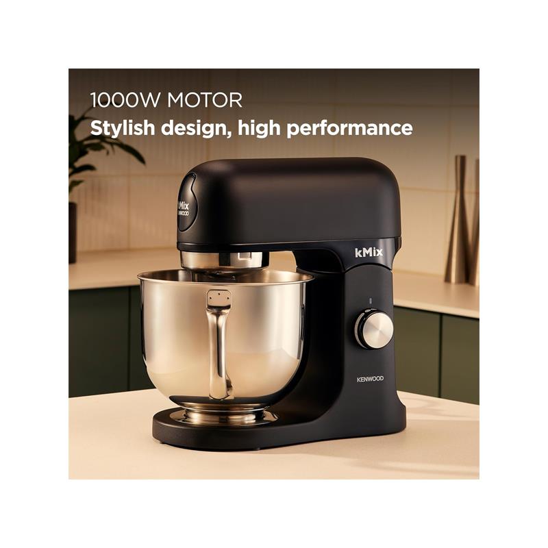 Kenwood kMix Sleek Stand Mixer Stainless Steel Bowl Planetary Mixing Variable Speed Control 3-Piece Patisserie Set And Splash Guard 1000W 5 Litres Black