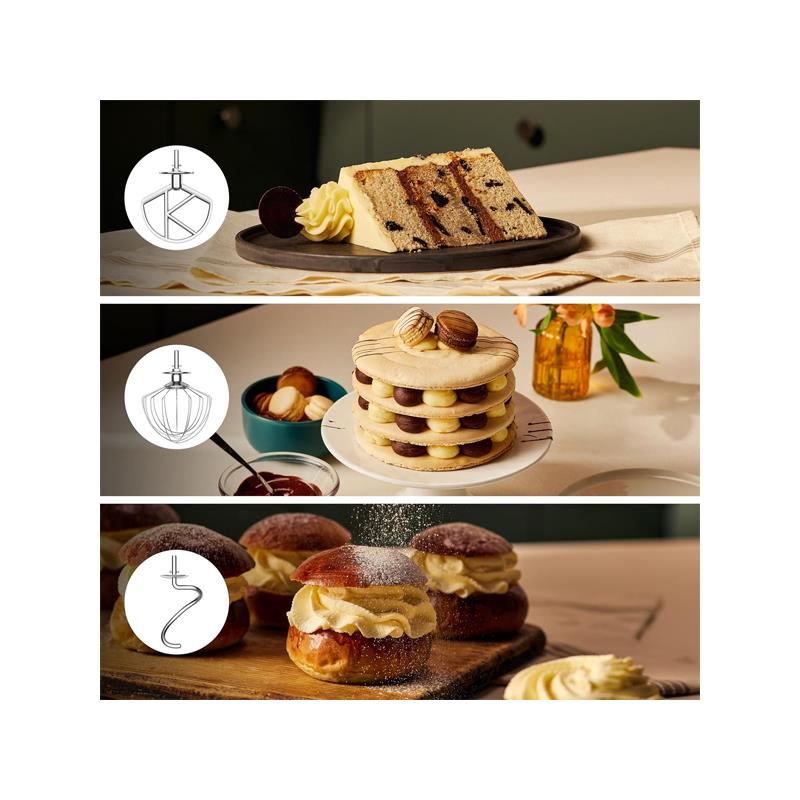 - Multiple attachments: Includes K-beater, whisk, and dough hook for versatile mixing