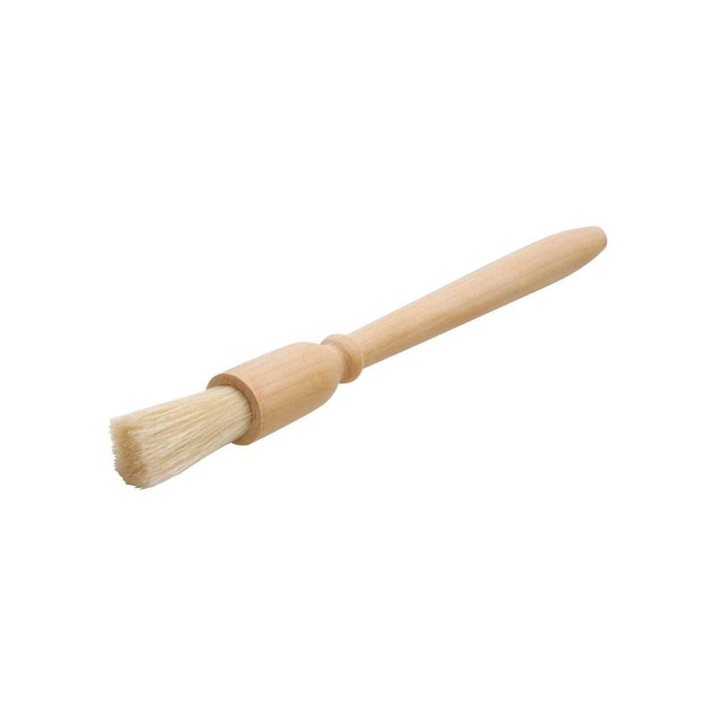 Its pure bristles soak up egg wash, butter, marinades, sauces and glazes quickly, allowing clean and controlled application on pastries, pies, meats and baking tins. The soft yet sturdy bristles are gentle enough for delicate pastry surfaces, while still firm enough to work thicker glazes into corners and textured areas.