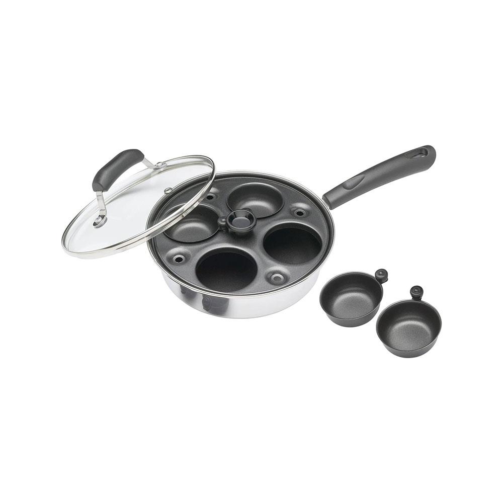 KitchenCraft Aluminum Coated Carbon Steel Four Hole Egg Poacher 21 cm 5 Litres – Silver