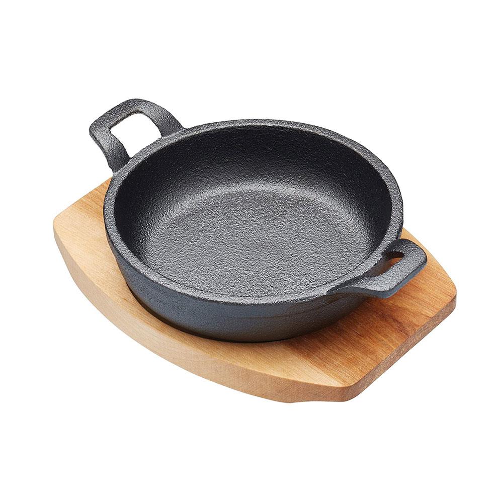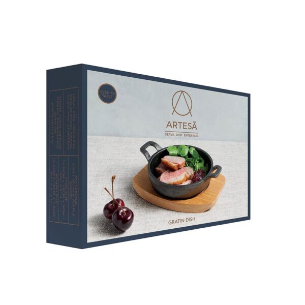 KitchenCraft Artesa Cast Iron Mini Gratin Dish With Serving Board 12cm x 16.5cm x 2cm - Black/Beige - Image 6