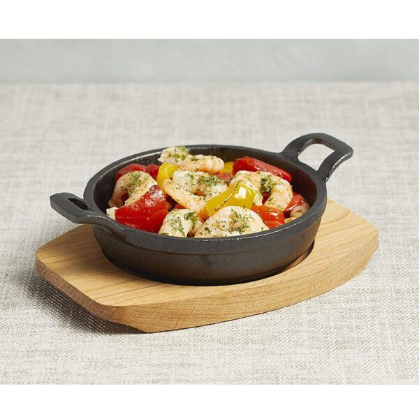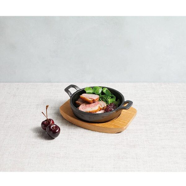 KitchenCraft Artesa Cast Iron Mini Gratin Dish With Serving Board 12cm x 16.5cm x 2cm - Black/Beige - Image 4