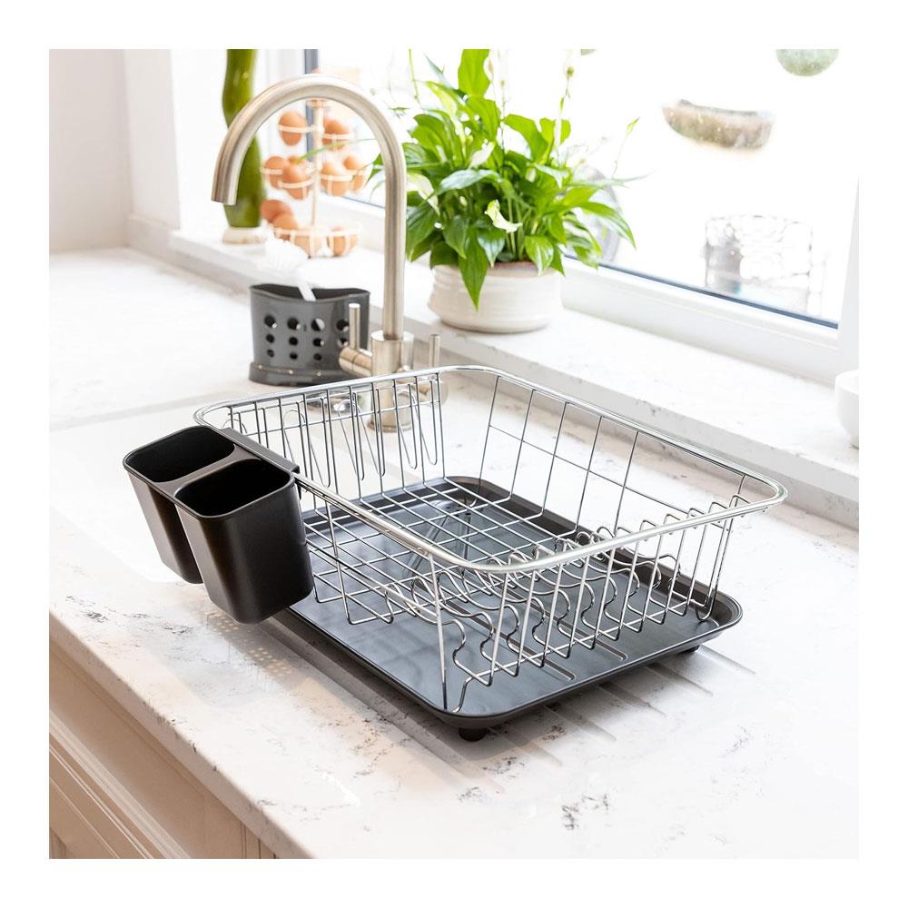 Using an elevated dish rack like this can reduce bacterial build-up compared to towel drying, helping keep your dishes cleaner and safer to use.
