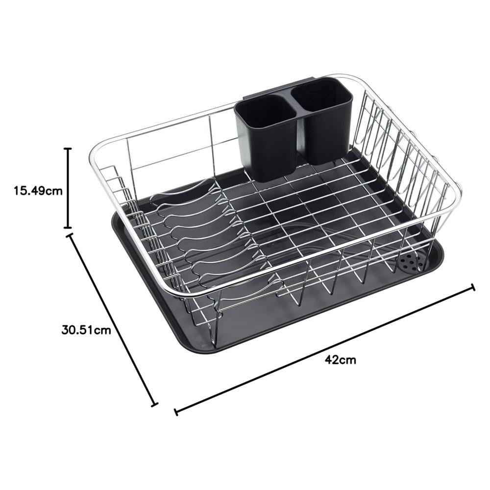 Measuring 42 x 30.5 x 15.5 cm, this rack holds plates, mugs, bowls, baking trays, and more. The movable cutlery holder adds extra flexibility, helping you make the most of your drying space.