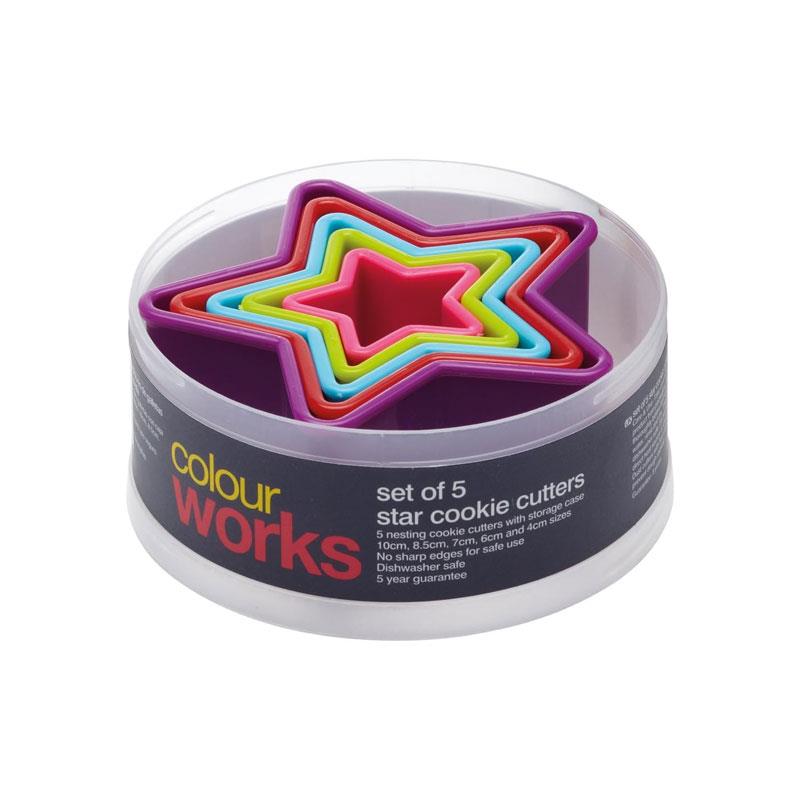 KitchenCraft Colourworks star shaped cookie cutters plastic set of 5 multicolour