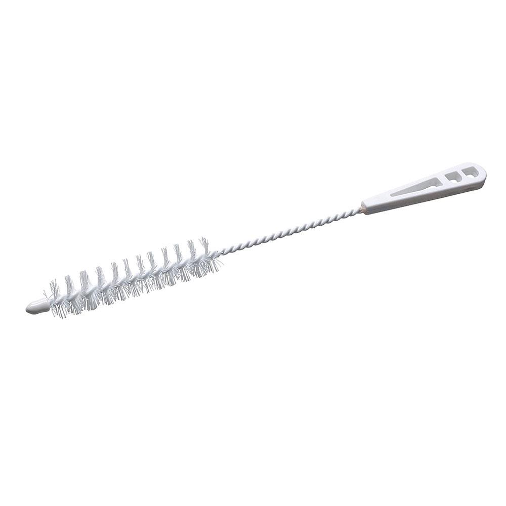 Traditional style spout cleaning brush with a durable angled bristle head and plastic handle with an integral hanging loop.