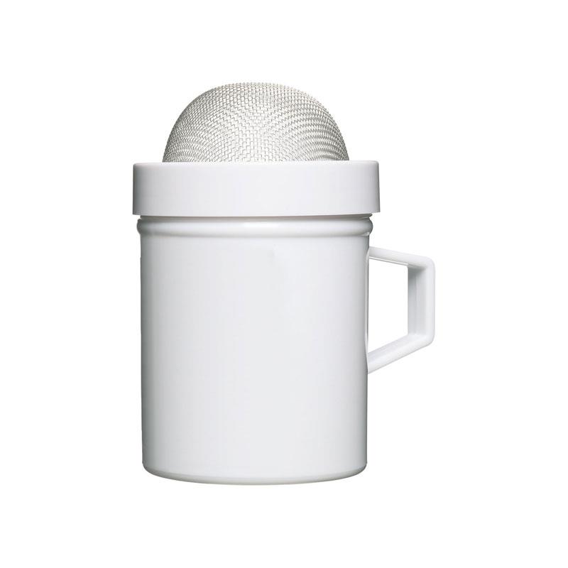 KitchenCraft Fine Mesh White Plastic Flour Shaker with Metal Sieve – Round