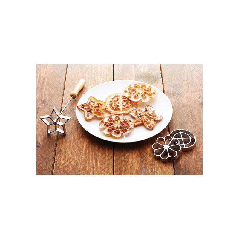 - Includes 3 interchangeable moulds – star, flower and circle designs