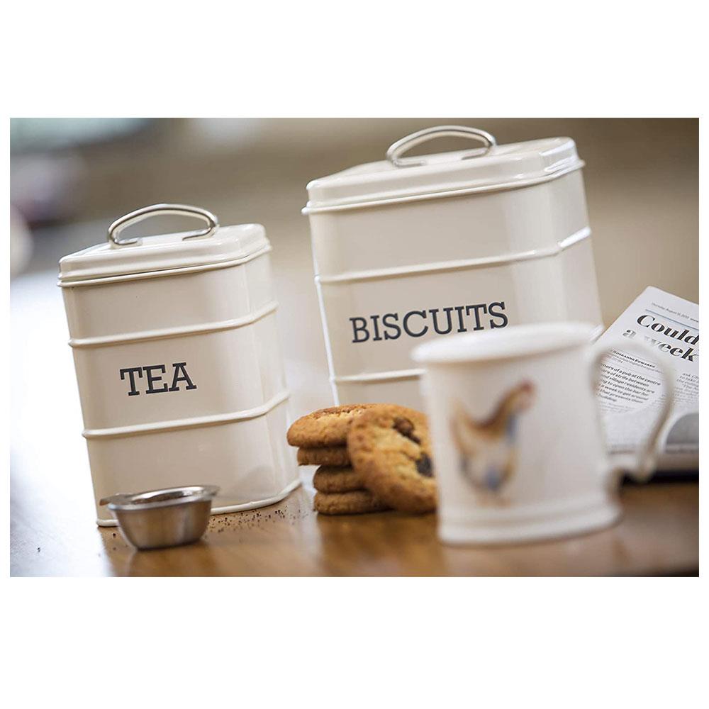 KitchenCraft Living Nostalgia Metal Tea Canister – Antique Cream