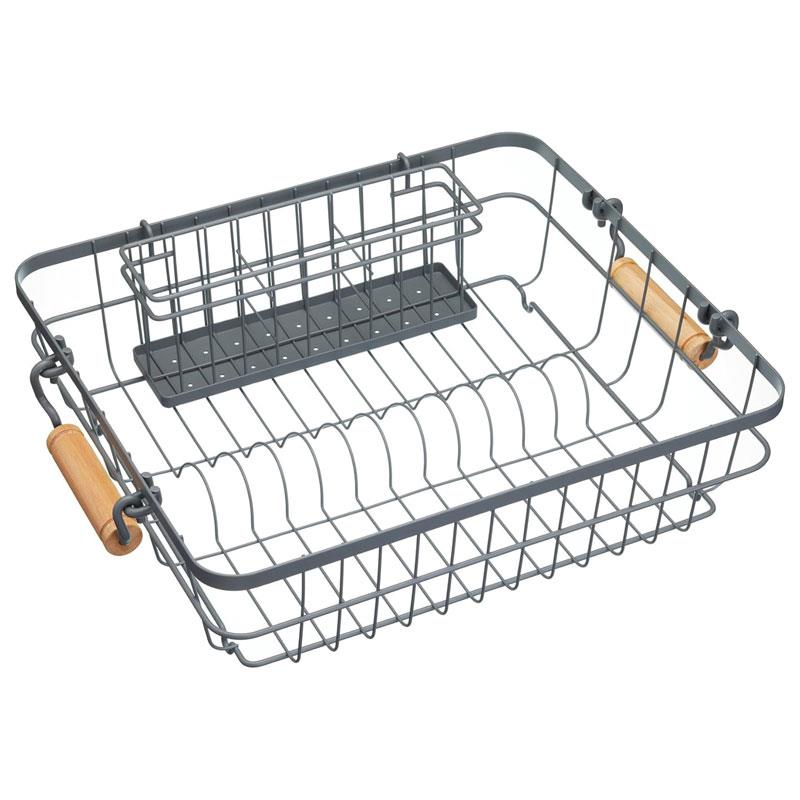 Upgrade your washing-up routine with this vintage-inspired wire dish drainer with cutlery holder – the perfect mix of practicality, style, and durability. Designed in a timeless grey finish with retro wooden handles, this dish rack with cutlery drainer makes drying plates, mugs, and utensils quick, hygienic, and beautifully organised. Whether you’re clearing up after family meals or Sunday roasts, it brings both elegance and efficiency to your kitchen.