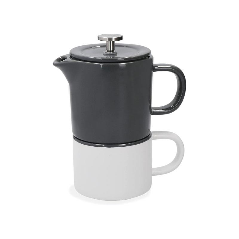 La Cafetière Barcelona Coffee For One Set in Cool Grey – Ceramic Cafetiere and Mug