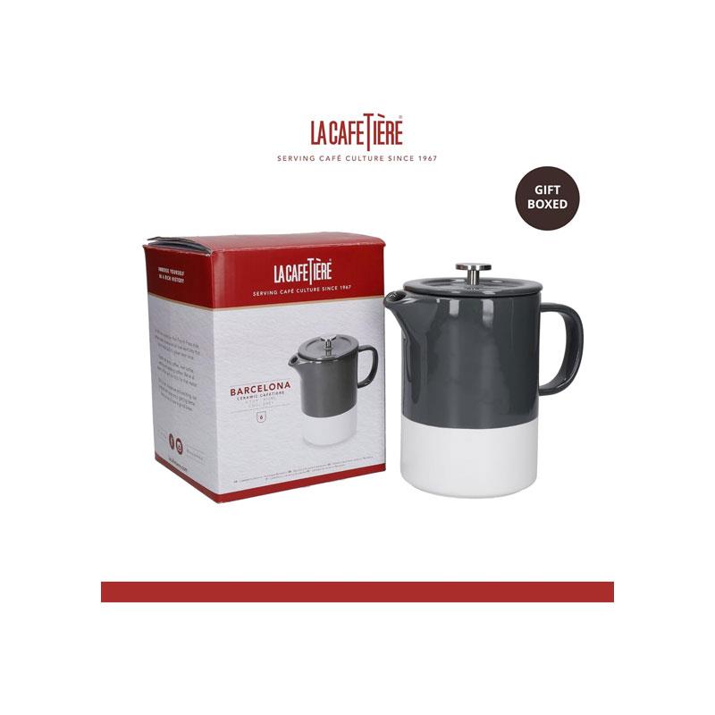 Inspired by the relaxed, artistic spirit of Barcelona, the set features a cool grey block-colour finish, giving it a modern, minimalist appeal that complements any kitchen décor. The durable ceramic body ensures excellent heat retention, while the fine-mesh stainless steel plunger allows smooth filtration for richer, fuller coffee flavour.