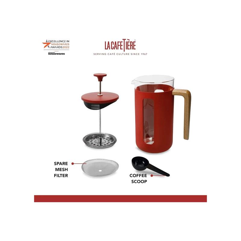 With its vibrant red finish and ergonomic beechwood handle, this French press adds a modern touch to any kitchen. Ideal for personal use, small households, office desks, or as a thoughtful gift for coffee lovers. The reusable filter system also makes it an eco-friendly brewing choice.
