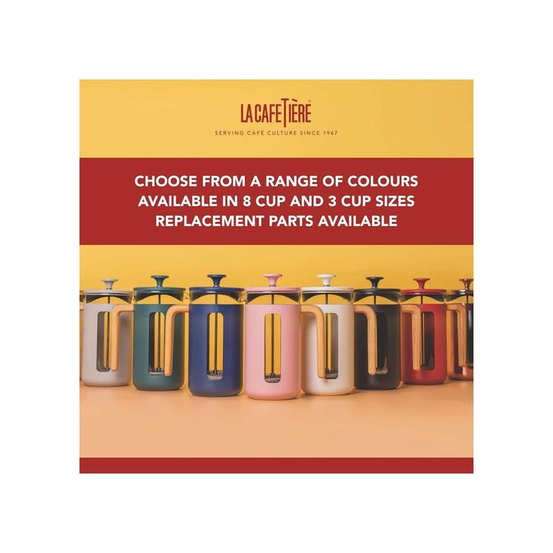 Brew rich, full-bodied coffee with the La Cafetiere Pisa 3-Cup French Press, designed for both style and performance. This 350ml cafetiere features a heat-resistant borosilicate glass jug housed in a durable, rust-proof stainless steel frame for long-lasting use. Its micro-fine mesh filter delivers a smooth, grit-free coffee experience, enhancing the natural aroma and flavour of your grounds.