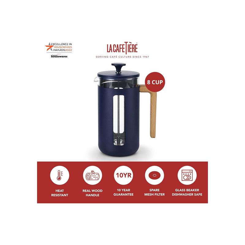 La Cafetiere Pisa 8-Cup Cafetiere French Presses Coffee Maker Borosilicate Glass Stainless Steel Navy