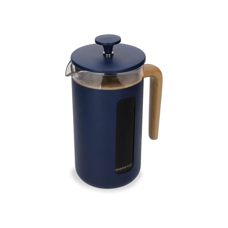 The cafetière features a heat-resistant borosilicate glass beaker, engineered to withstand thermal shock while preserving the natural flavours and aromas of your coffee. The glass jug is securely housed within a rust-resistant stainless steel frame with a colour-coated navy finish, offering durability, stability, and a refined look for any kitchen.