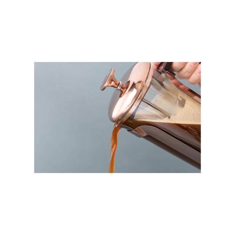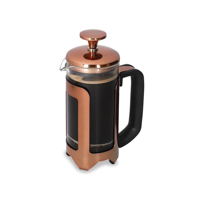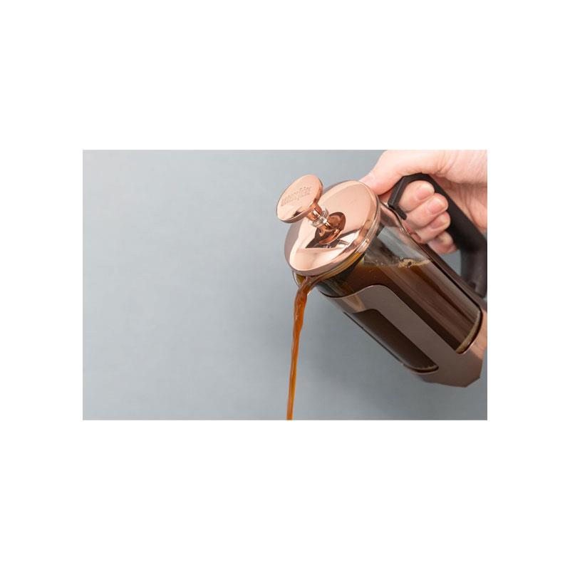The Roma French Press features a heat-resistant borosilicate glass jug, safely housed in a stylish copper-effect stainless steel frame that adds durability and elegance to your kitchen. Its traditional curved design keeps brewing simple while ensuring excellent flavour extraction with every press.
