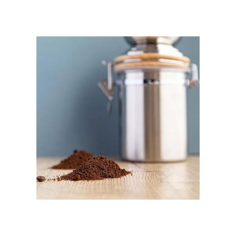 A built-in airtight storage canister catches freshly ground coffee directly as you grind. The clip-top lid with a silicone seal helps lock in freshness, making it ideal for immediate use or short-term storage. Compact and easy to use, it’s perfect for home kitchens, offices, or travel.