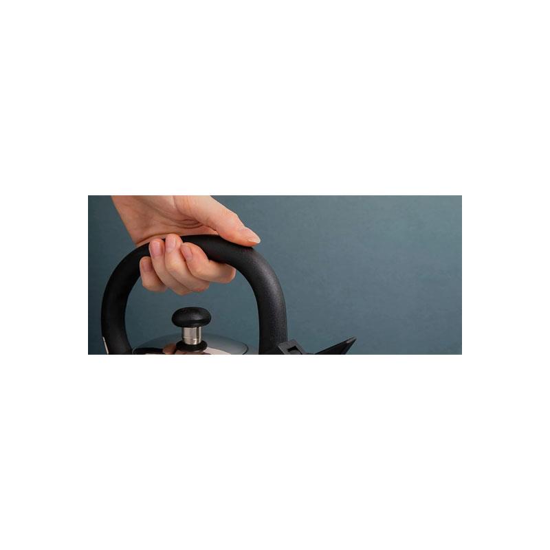 The kettle is fitted with an ergonomic stay-cool plastic handle and knob, ensuring safe and comfortable handling even when hot. An embossed maximum fill line inside helps prevent overfilling, while the rust-resistant stainless steel body ensures long-lasting performance and easy cleaning.