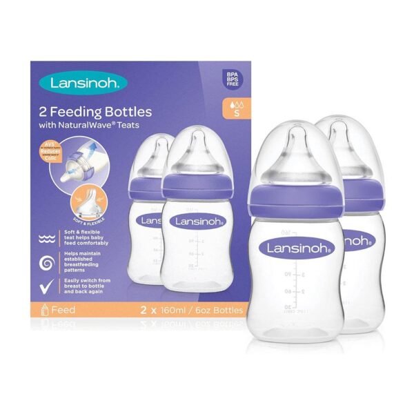 Lansinoh 2 Feeding Bottles 160ml With NaturalWave Teat Anti-Colic Baby Bottles – Transparent