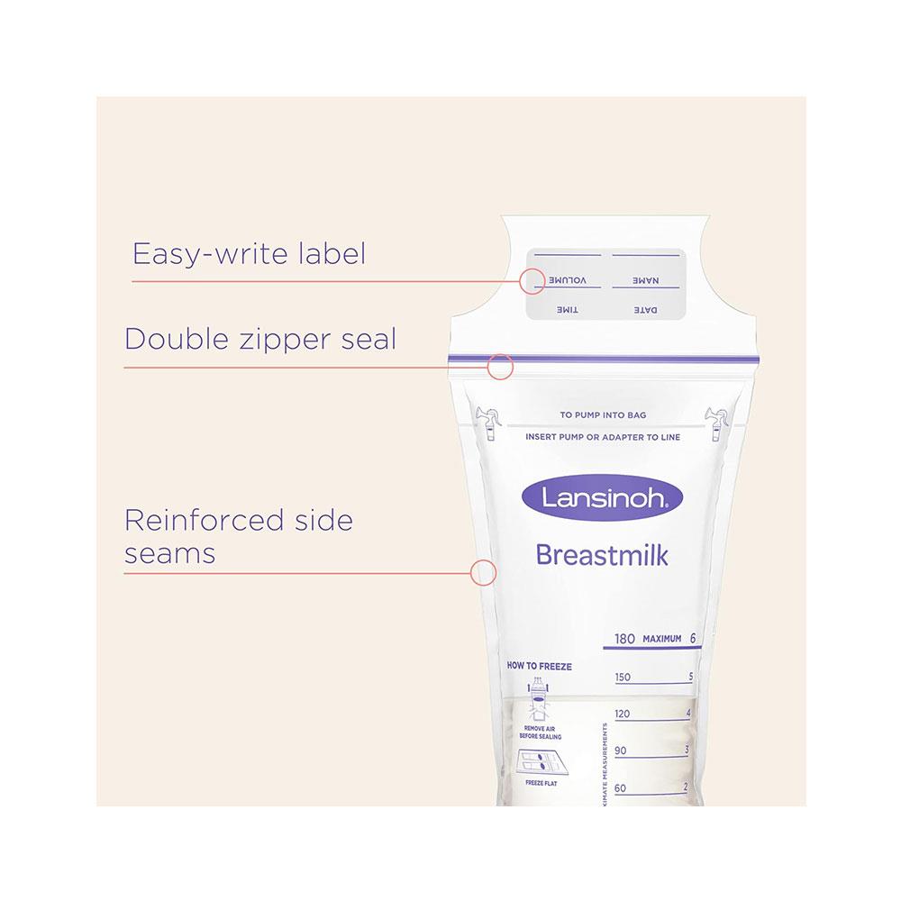 Lansinoh Breastmilk Storage Bags 50 Pre-Sterilised Bags Double Zipper Seal – Transparent