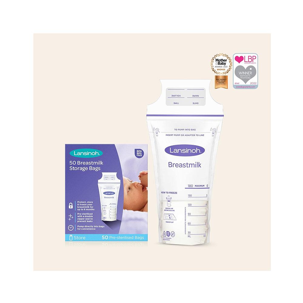 Lansinoh Breastmilk Storage Bags 50 Pre-Sterilised Bags Double Zipper Seal