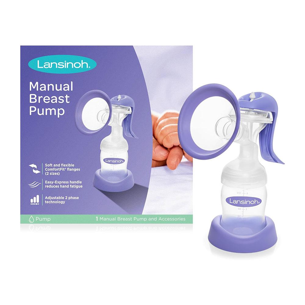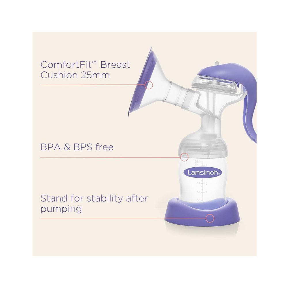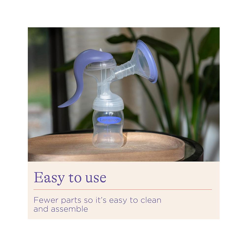 Lansinoh Manual Breast Pump With 160ml Baby Bottle Customisable Pumping Modes – Purple