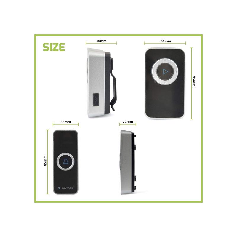 The Lloytron Melody MIP3 Portable Wireless Door Chime Kit is a flexible, modern door alert solution designed for homes and businesses. Featuring a USB rechargeable lithium-ion portable chime receiver and a battery-powered wireless bell push, this system delivers reliable alerts without wiring or wall damage.