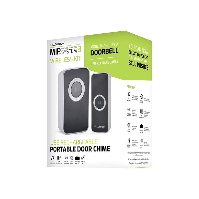 Lloytron Melody MIP3 Lithium Rechargeable Portable Door Chime Kit Black