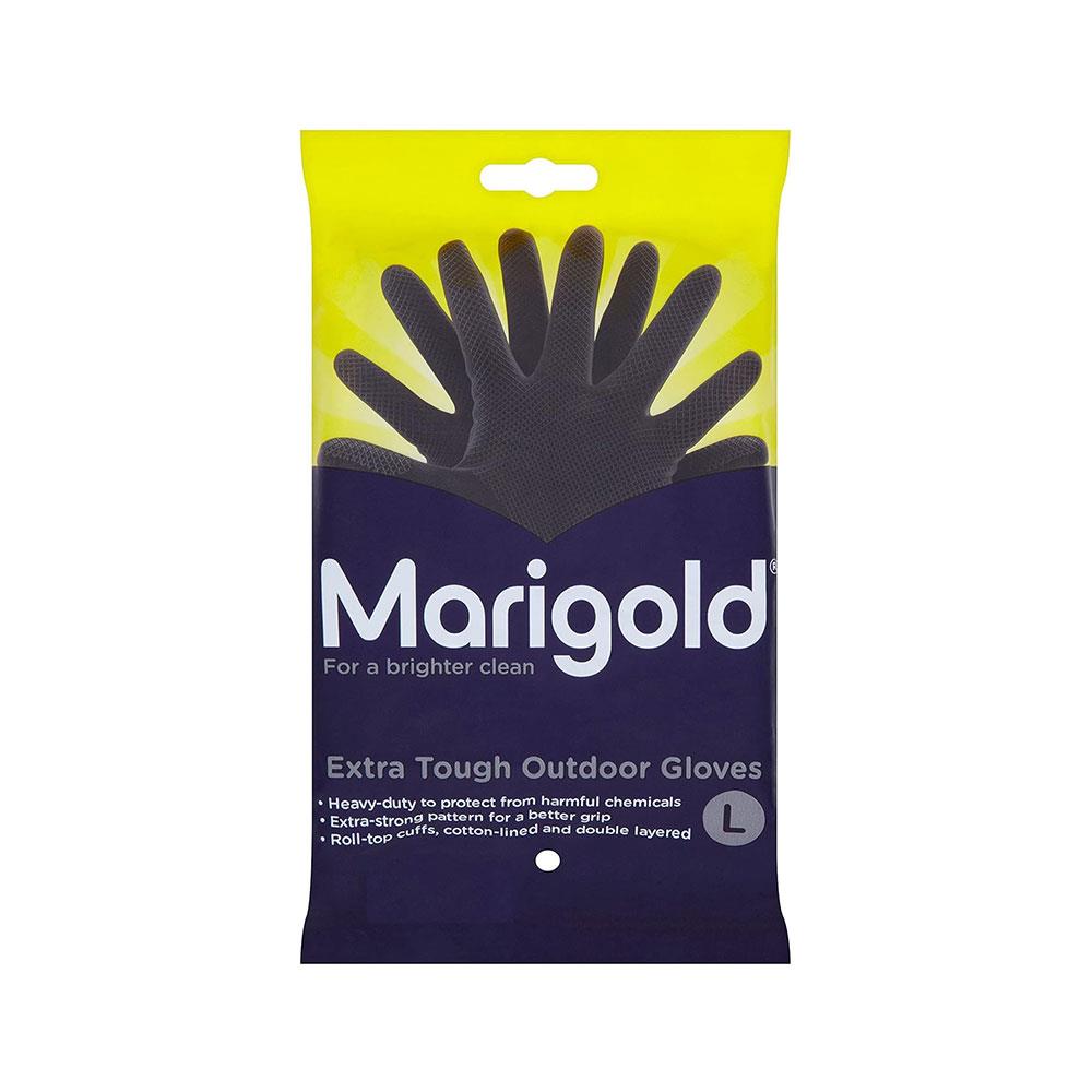 Marigold Extra Tough Outdoor Gloves are double-layered, giving extra protection for heavy-duty tasks in and outside the home. These tough, durable gloves protect your hands from harsh domestic chemicals and can be recycled with TerraCycle®. Marigold Extra Tough Outdoor Gloves are double-layered, giving extra protection for heavy-duty tasks in and outside the home. These tough, durable gloves protect your hands from harsh domestic chemicals and can be recycled with TerraCycle®.
