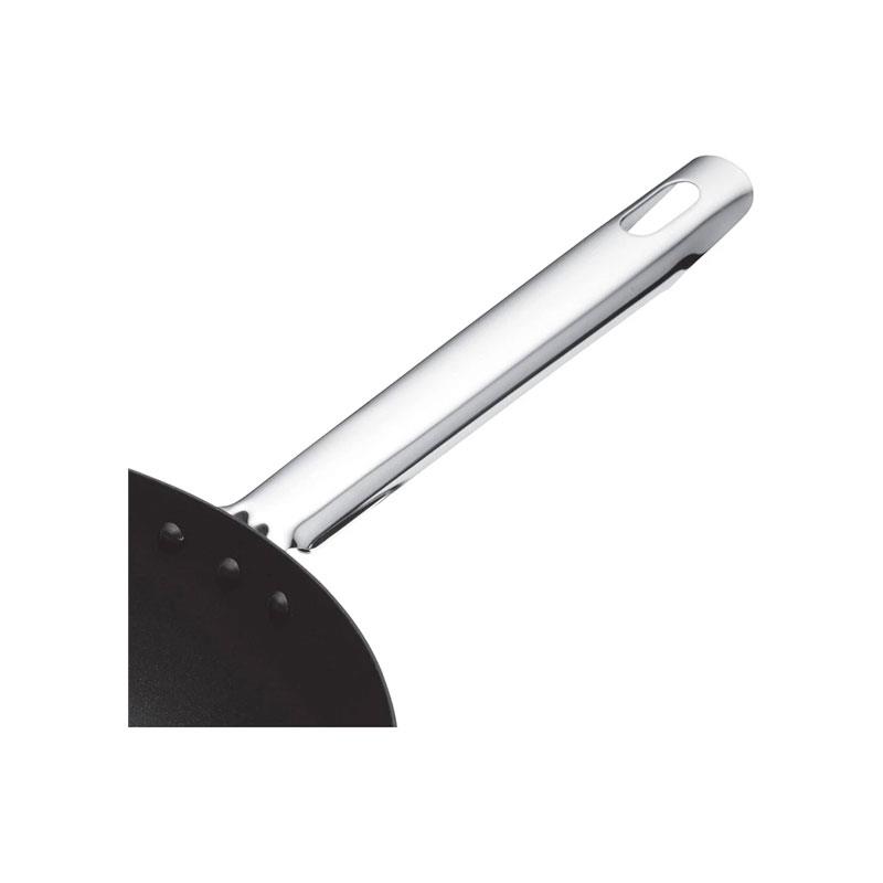 The extra-long riveted stainless-steel handle stays cool, offers comfortable control, and includes a hanging loop for tidy storage. Dishwasher-safe for convenient cleaning, it is the perfect everyday wok for cooks who demand reliability and professional-grade results.