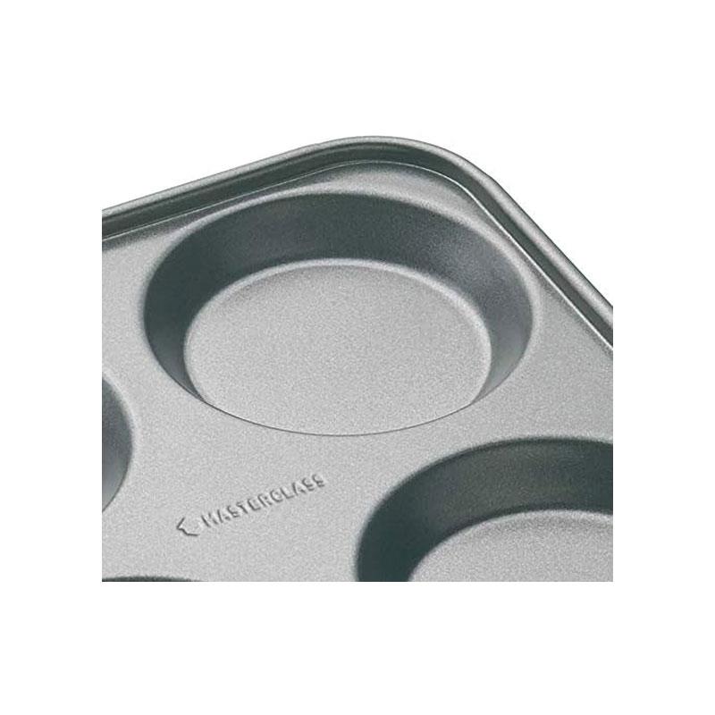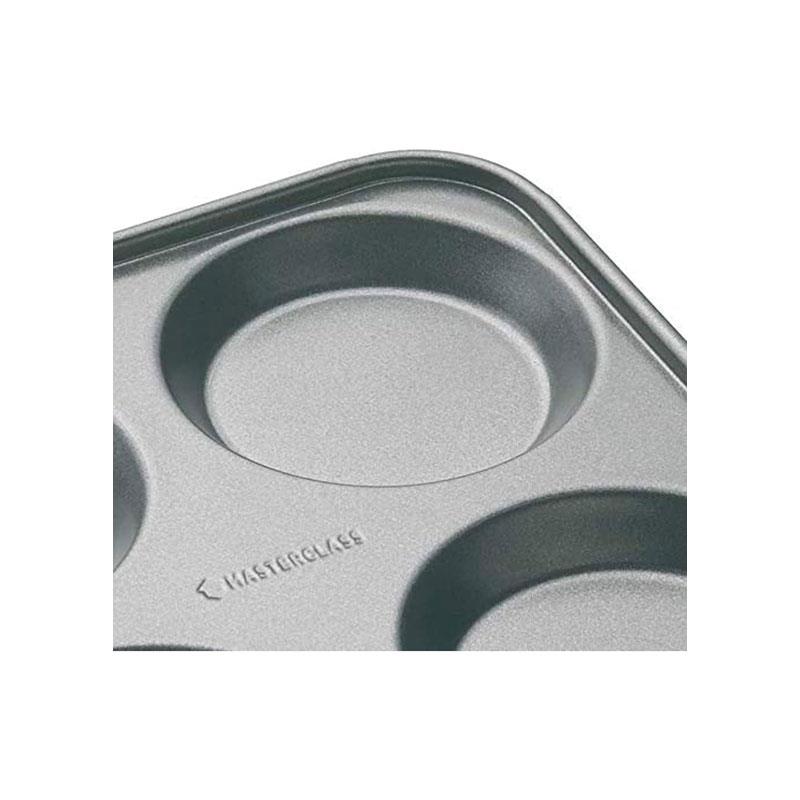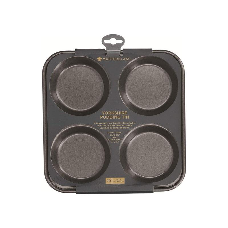 MasterClass 4 Hole Yorkshire Pudding Pan 24cm Baking Tray PFOA Non Stick Carbon Steel Grey