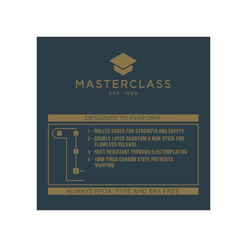 Bake perfectly risen, golden Yorkshire puddings with the MasterClass 4 Hole Yorkshire Pudding Pan 24cm, designed for reliable performance and long-lasting durability. Crafted from heavy-duty 1mm carbon steel, this baking tray ensures even heat distribution, helping your puddings cook consistently with crisp edges and fluffy centres.