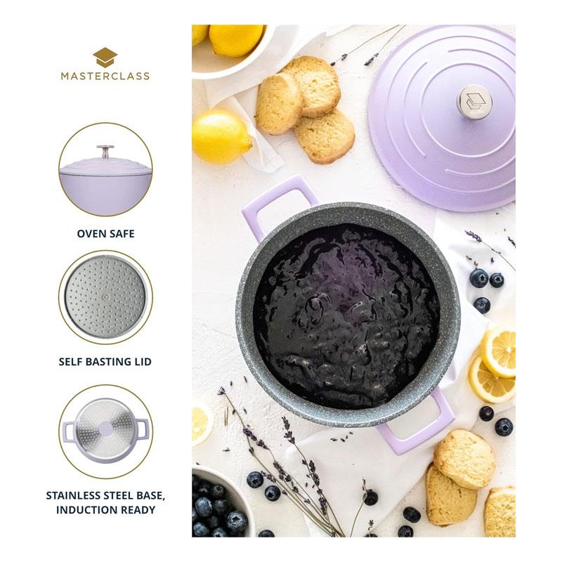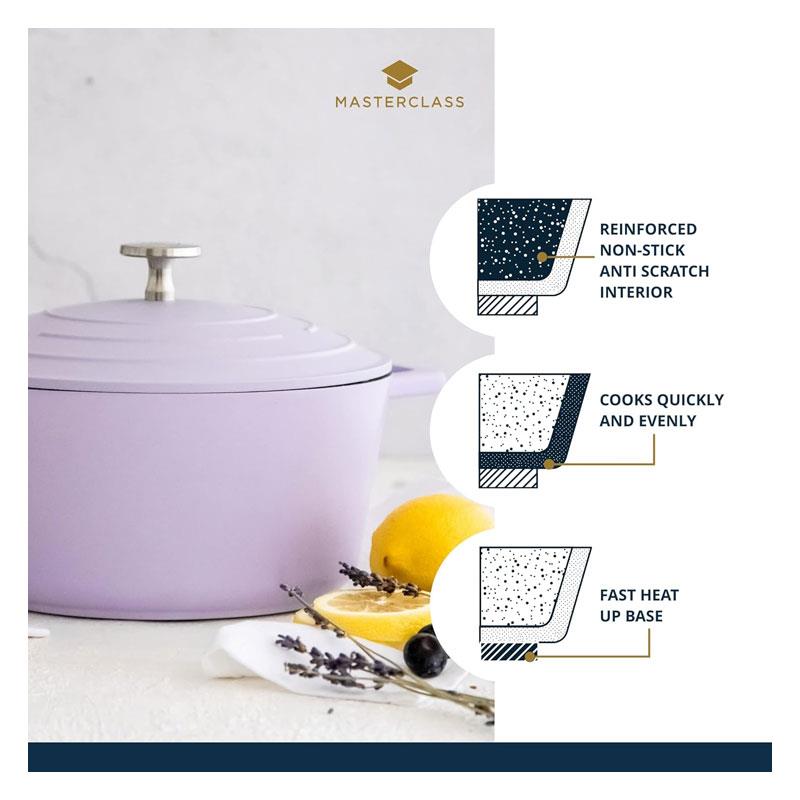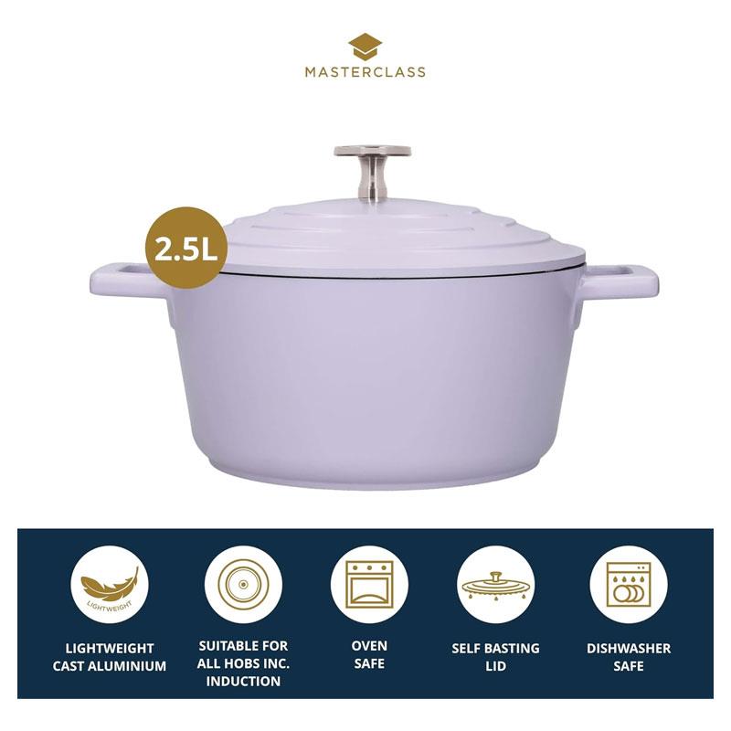 MasterClass 2.5L Cast Aluminium Casserole Dish with Lid – Lavender | Lightweight, Non-Stick, Hob-to-Oven Cooking