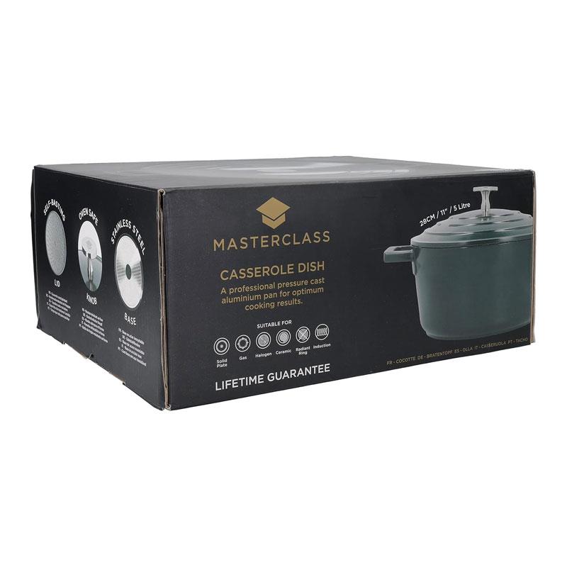 MasterClass Cast Aluminium Casserole Dish with Lid 5L / 28cm – Hunter Green | Lightweight Non-Stick Pot