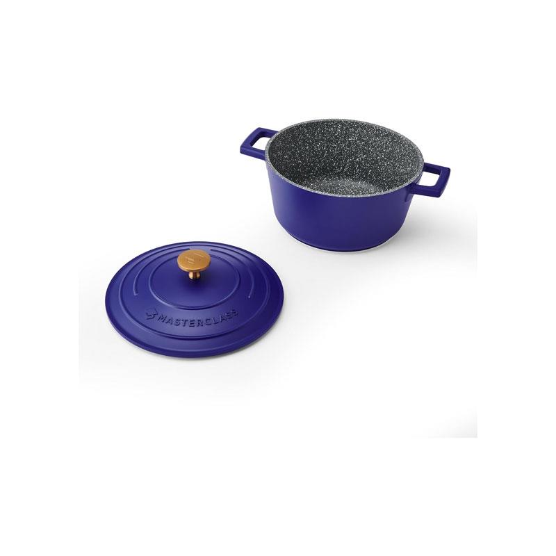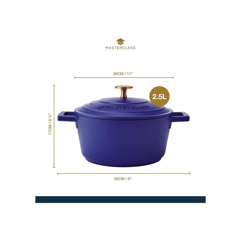 MasterClass Casserole Dish 2.5 Litres/20cm Cast Aluminium Self Basting Lid Round Small Blue