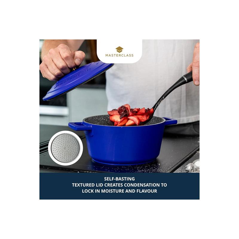 MasterClass Casserole Dish 2.5 Litres/20cm Cast Aluminium Self Basting Lid Round Small Blue - Image 4