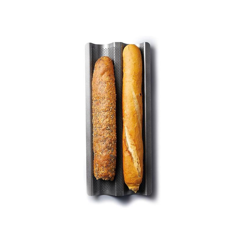 - Design: Two-cavity tray for baking 2 regular baguettes