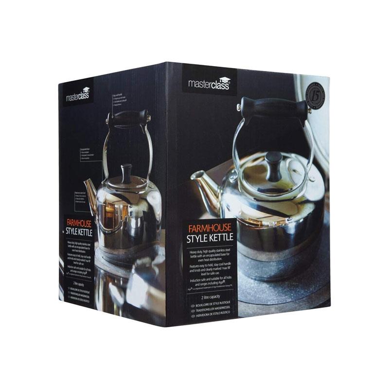MasterClass Deluxe Farmhouse Style Stovetop Kettle 2 Litres Stainless Steel Heavy Duty Induction-Safe Silver