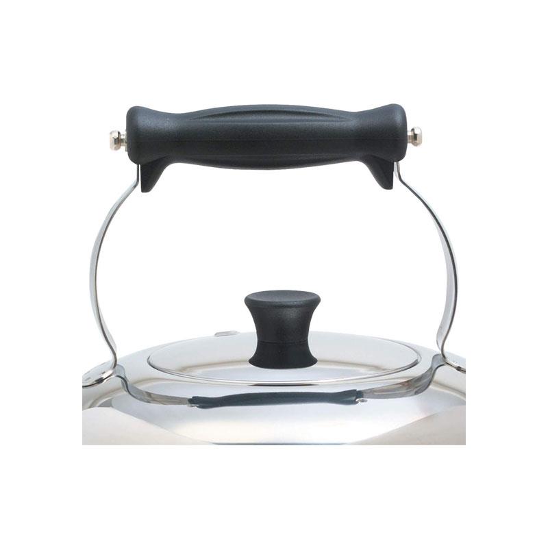 Safety and convenience are key features of this farmhouse kettle. It includes a stay-cool ergonomic handle and knob for comfortable lifting and pouring, even when hot. Clear internal capacity markings with a maximum fill indicator help prevent overfilling and boiling over.