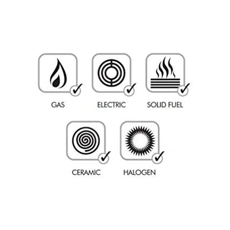 - Compatibility: Suitable for induction, gas, electric, ceramic, halogen, solid plate, radiant ring, AGA & camping stoves
