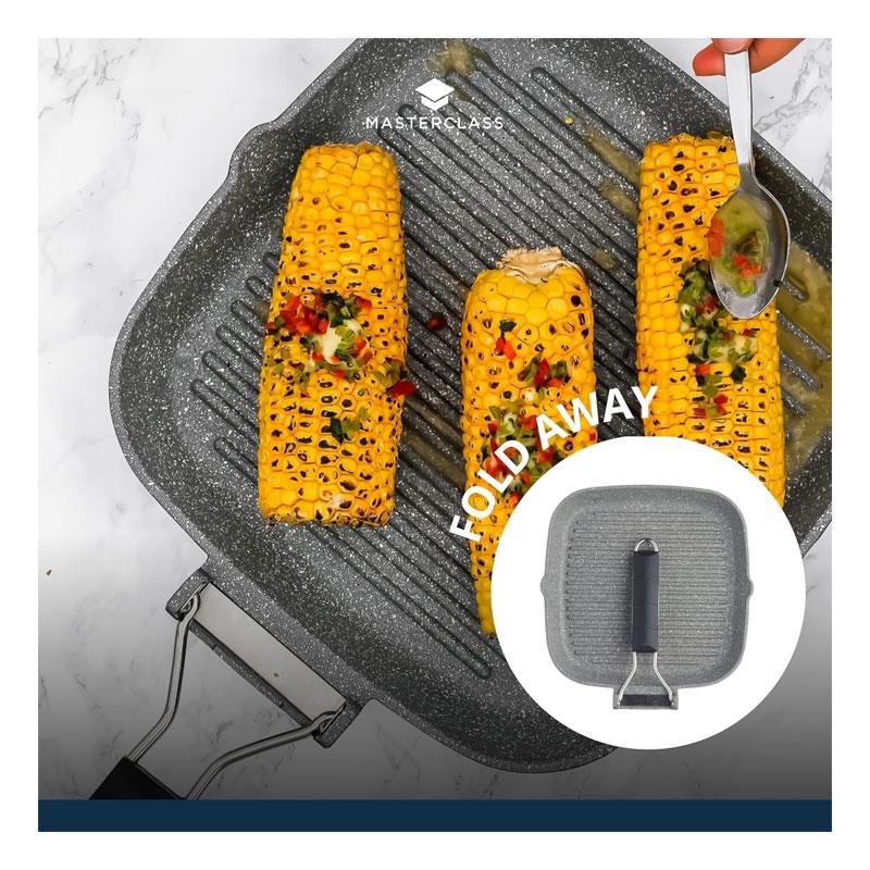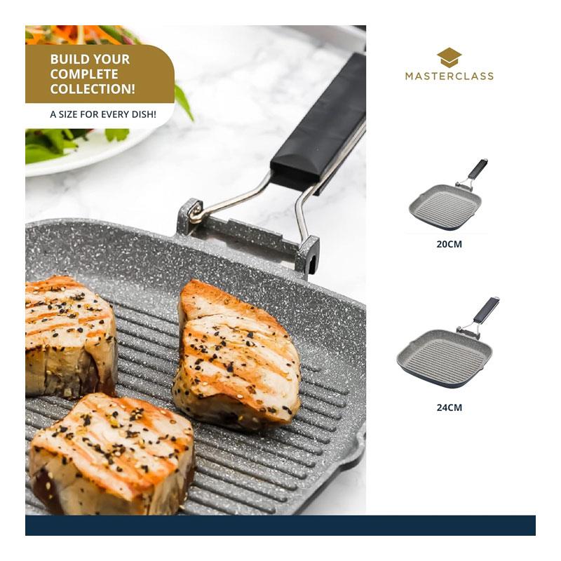 MasterClass Grill Pan 20cm – Non-Stick Induction-Safe Griddle Pan with Folding Handle
