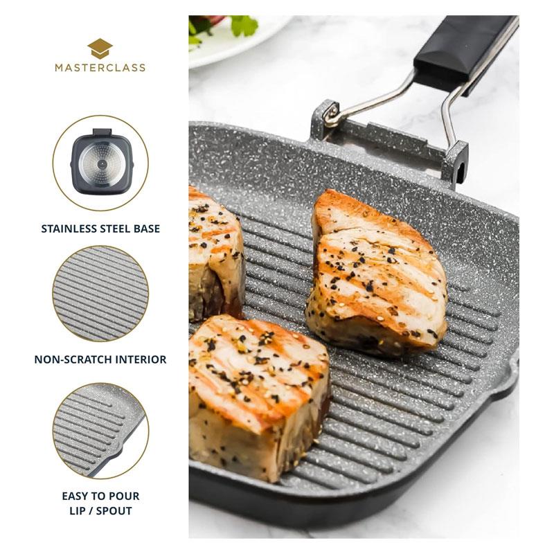 If you’re searching for the best grill pan UK shoppers love, this MasterClass design ticks every box. It combines professional performance with everyday practicality, offering rapid heating, healthier cooking, and superb durability. The clever folding handle makes it perfect for compact kitchens, while the premium non-stick surface means you can cook confidently without food sticking or burning. Whether you’re a seasoned home chef or simply want fuss-free weekday meals, this pan delivers outstanding value when you buy online at Buys Best.