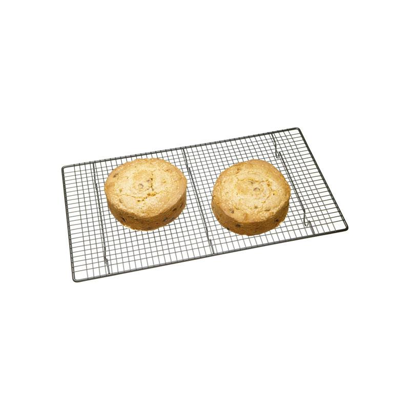 Its raised design promotes fast evaporation of steam, ensuring perfect texture and consistent results after baking. The robust construction features reinforced cross bars, making the rack strong enough to support heavy fruit cakes or even function as a trivet for resting hot pots and pans—protecting kitchen countertops from heat damage.